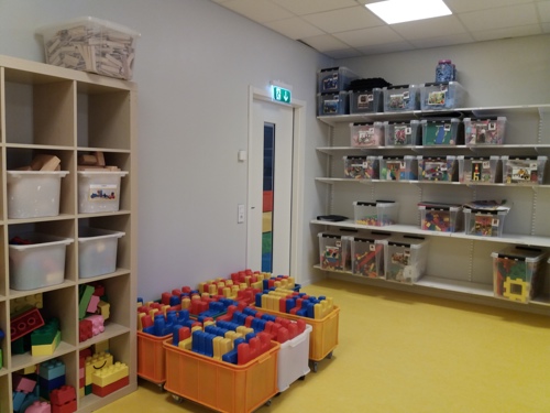 Vi har även tillgång till 3 studios där vi gemensamt kan anpassa och bestämma användningsområde för vår verksamhet. I den gröna studion finns idag material för skapande i olika former. I den gula studion finns i dagsläget bl.a. konstruktionsmaterial och alla våra leklådor som används ute på avdelningarna. I den blå studion kommer att användas till samisk inspiration, drama och musik.